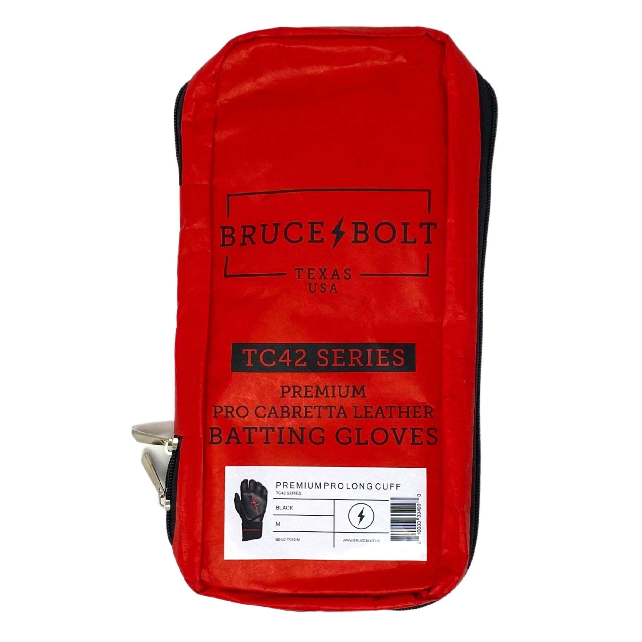 HIGHEST QUALITY, MOST DURABLE BATTING GLOVE IN BASEBALL: Each pair of BRUCE BOLT batting gloves are handmade by skilled craftsmen using only the highest quality 0.9mm Cabretta leather and stitching techniques which makes our gloves buttery soft but more durable than any other glove on the market.