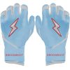 HIGHEST QUALITY, MOST DURABLE BATTING GLOVE IN BASEBALL: Each pair of BRUCE BOLT batting gloves are handmade by skilled craftsmen using only the highest quality 0.9mm Cabretta leather and stitching techniques which makes our gloves buttery soft but more durable than any other glove on the market.