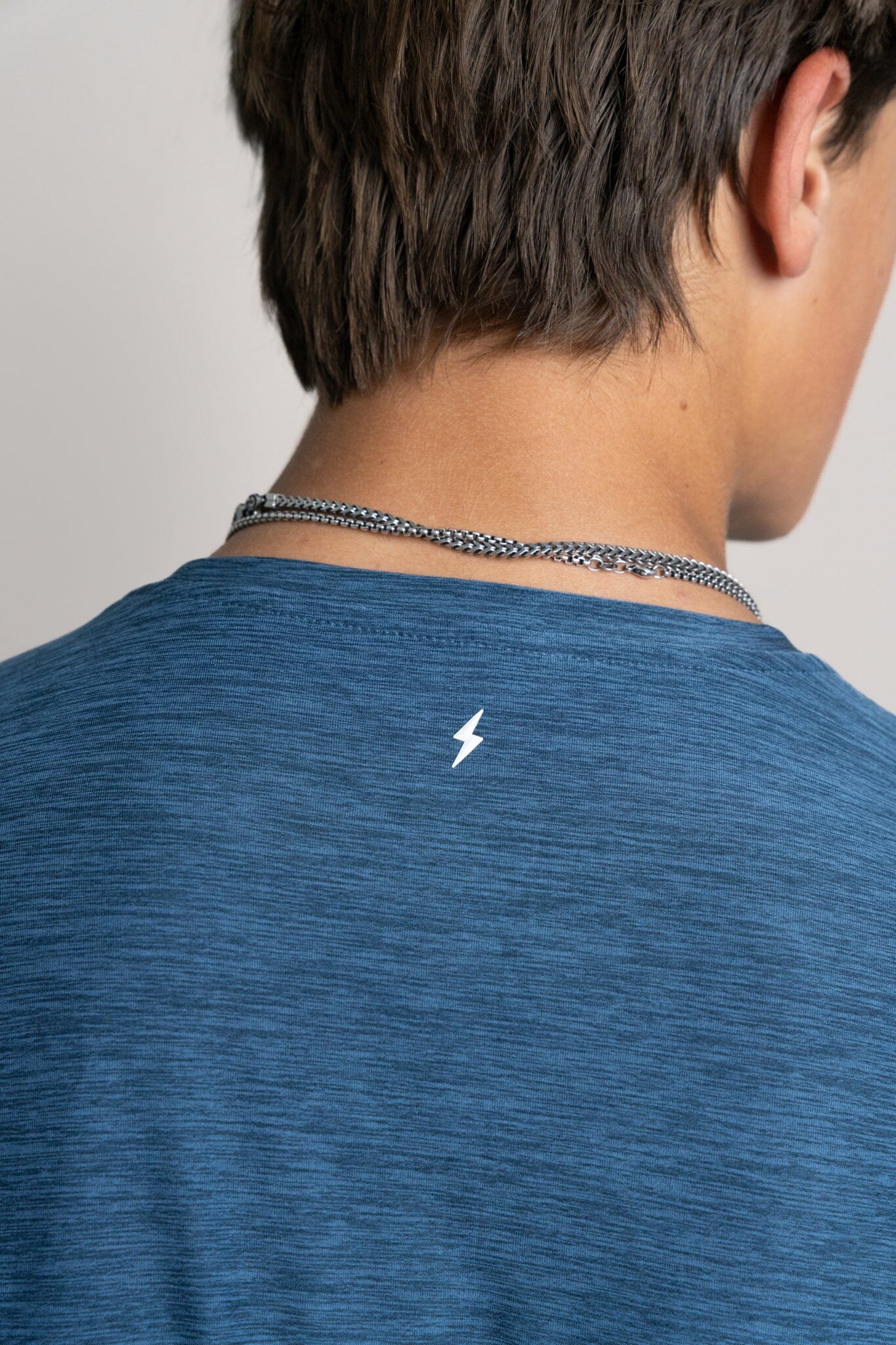 Our blank tees are branded with a stitched loop BOLT on the hemline and a small 3D silicone BOLT on the back of the neck.